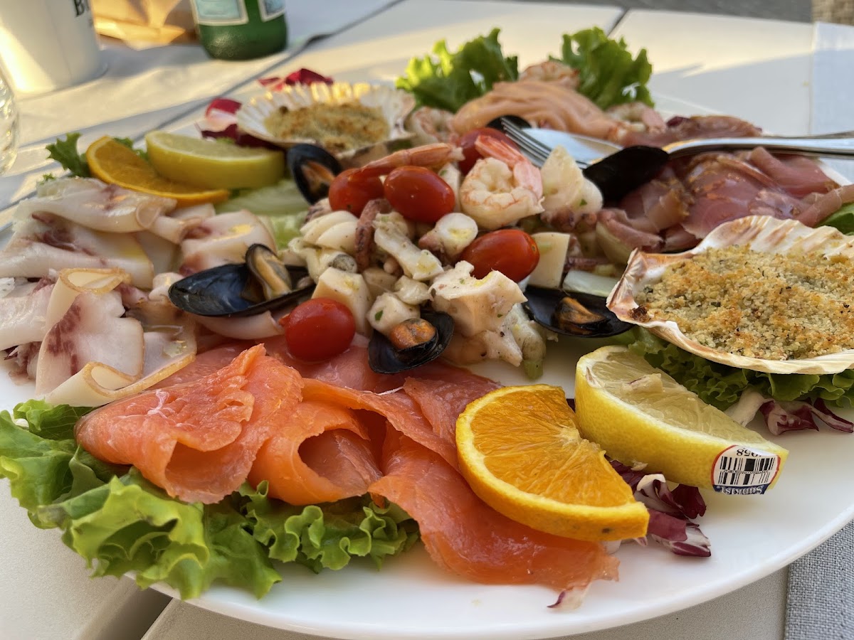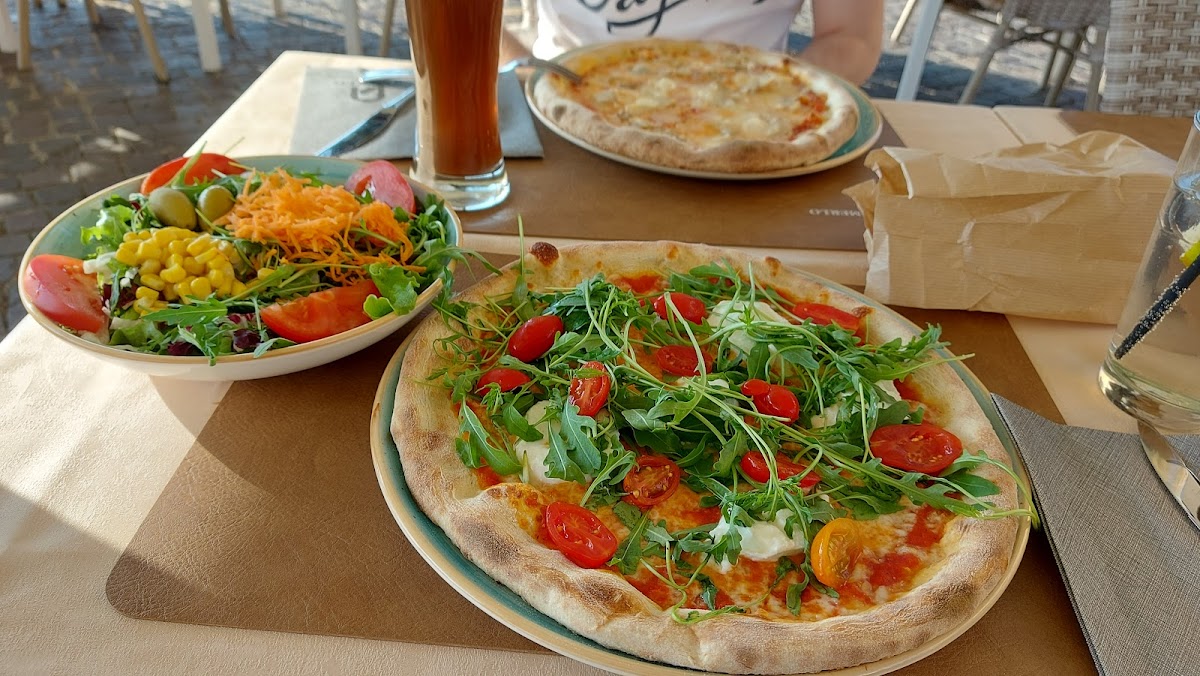 Stopped while in the lakeside town of Garda. Big outdoor seating area right on the lake. Easy place for lunch. Nothing fancy or over the top. Prices seemed reasonable for the view and quality of the food. We got the grilled veg plate a pizza and a Marinara salad see photos. Wait staff was attentive but we were here during off season early March. My pizza was tasty. We had two large beers on tap, one bottle of water and one non-alcoholic mocktail, one pizza, salad and grilled veg. In total just under 60 euros.